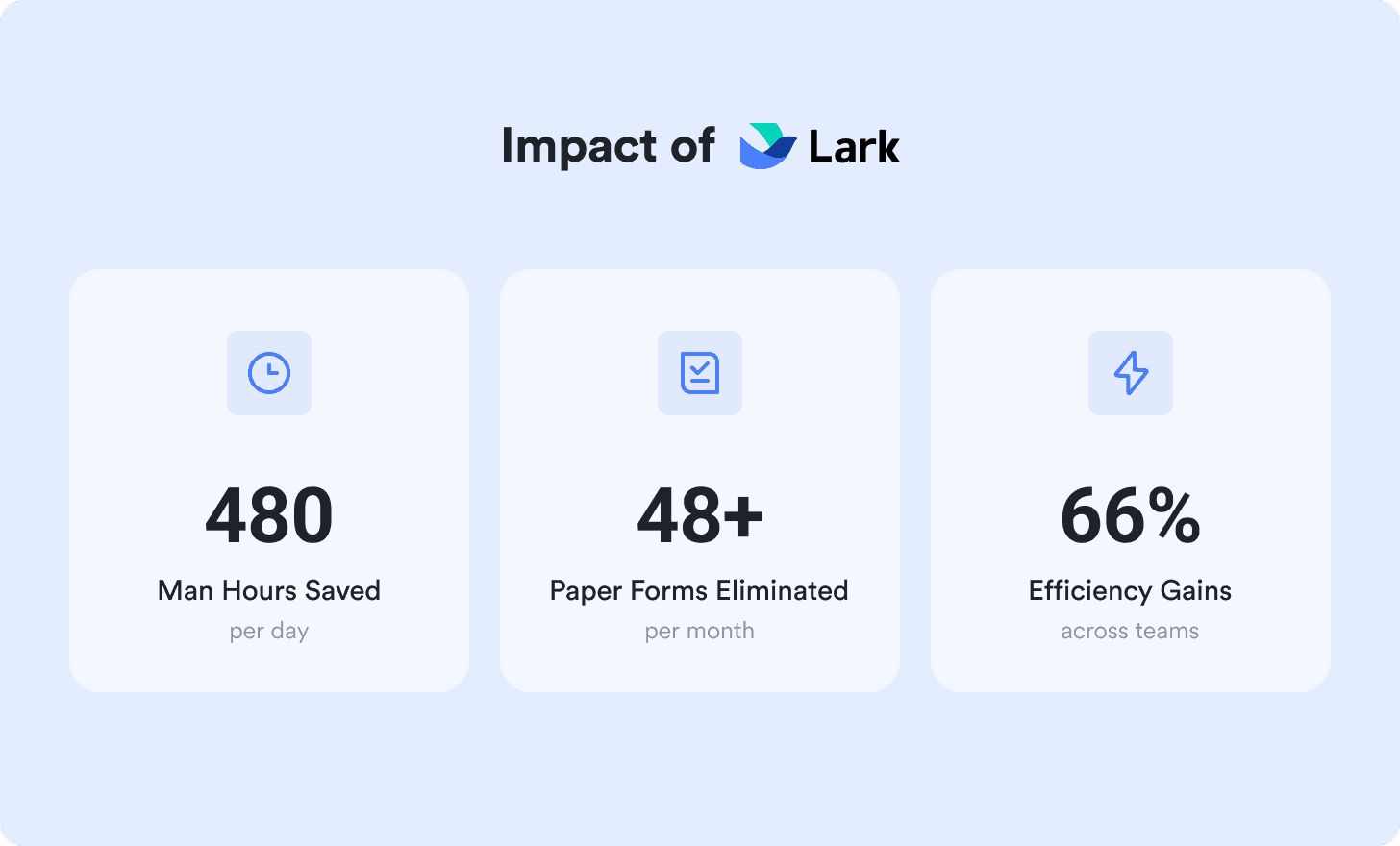 With everything integrated into a single app, adoption happened naturally. Teams no longer had to jump between apps, learn multiple systems or rely on paper trails. They open Lark, and everything they need is already there.
