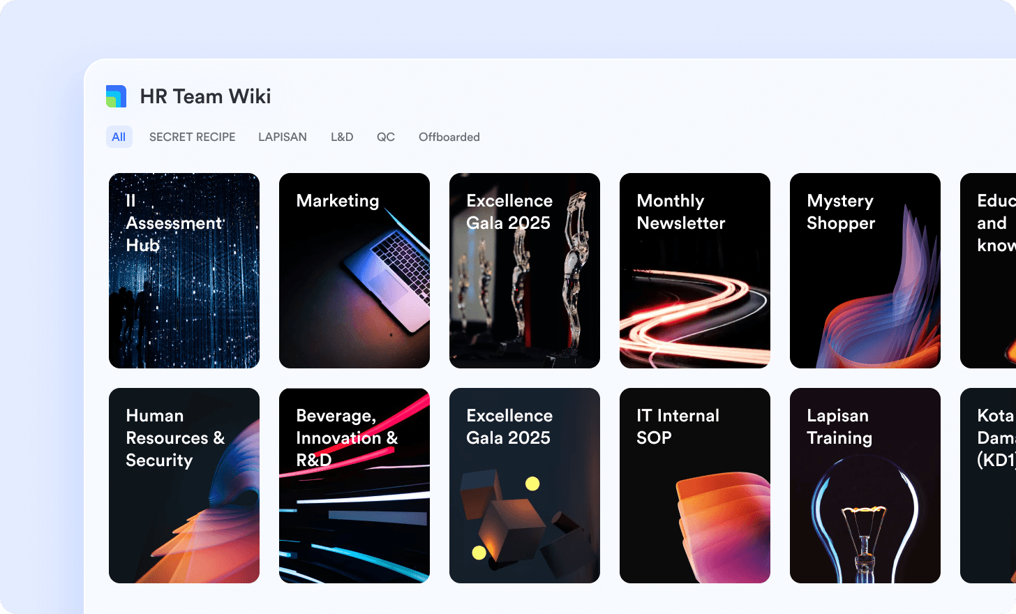 Secret Recipe realized that their previous platform, TeachmeBiz, was not enabling that. Engagement between teams was low, the interface felt outdated, and it existed outside their primary collaboration tools. New and experienced staff were not excited to learn or use it, and important knowledge stayed hidden instead of being shared.