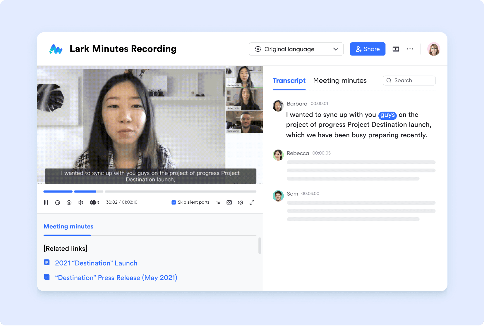 Automatic meeting transcriptions and instant AI-generated summaries allowed team members to quickly digest key points, turning a 30-minute meeting into a 10-minute read. With one-click translations, minutes were easy to review, boosting team productivity and decision-making.