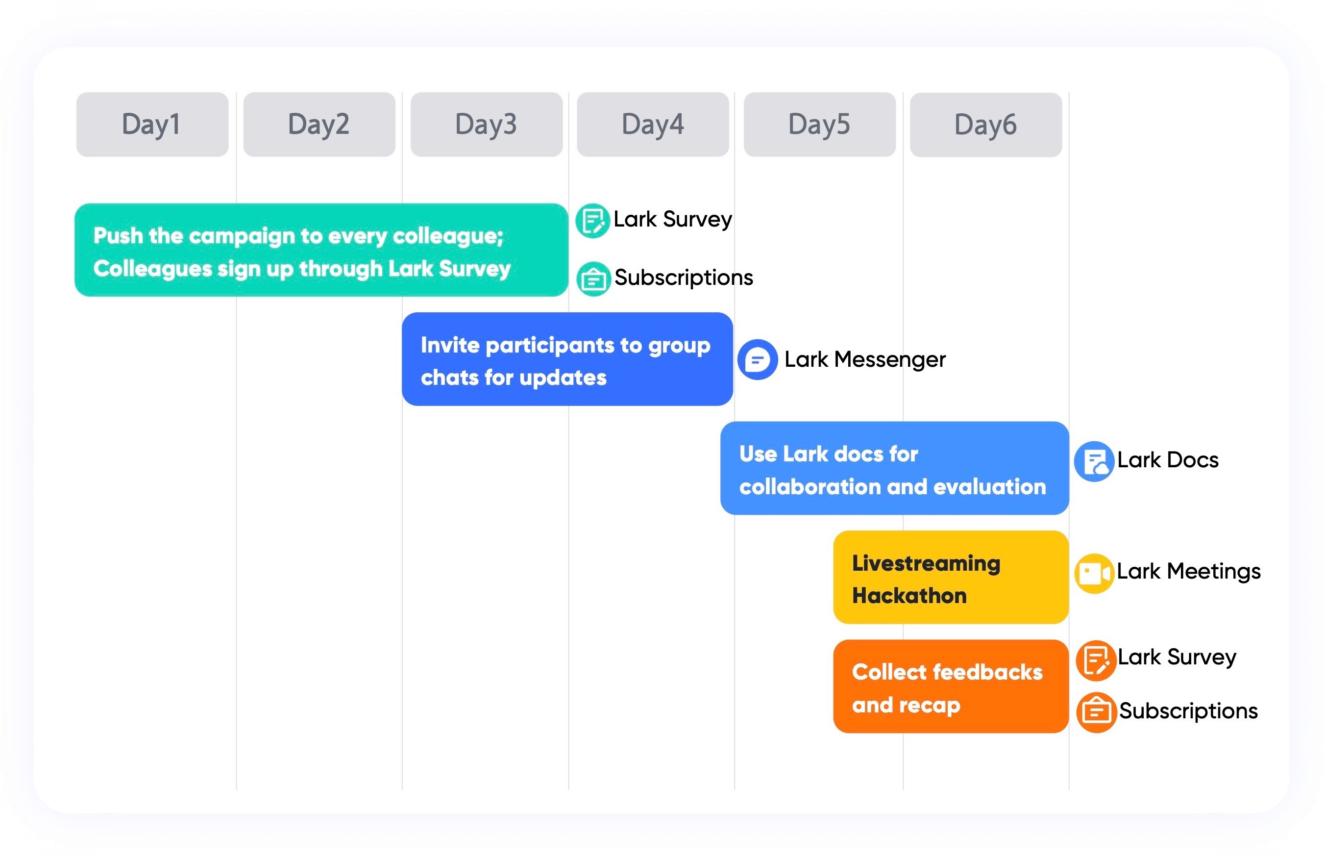 • Lark Announcement was used to publicize the competition. All employees received a notification in their chat feed