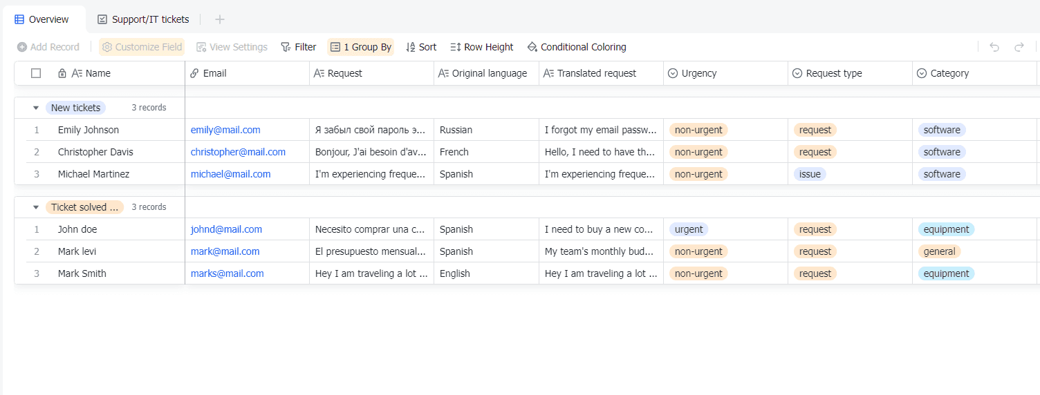 The Lark Base AI - AI Powered Support & IT Ticket template is a revolutionary tool designed to streamline your IT support and customer service processes. It leverages artificial intelligence to automate ticket generation, assignment, and resolution, thereby reducing manual effort and increasing efficiency. This template is designed to handle a high volume of support requests, categorize them based on their nature, and assign them to the appropriate teams or individuals. It also includes features for tracking ticket status, managing escalations, and generating reports for analysis.