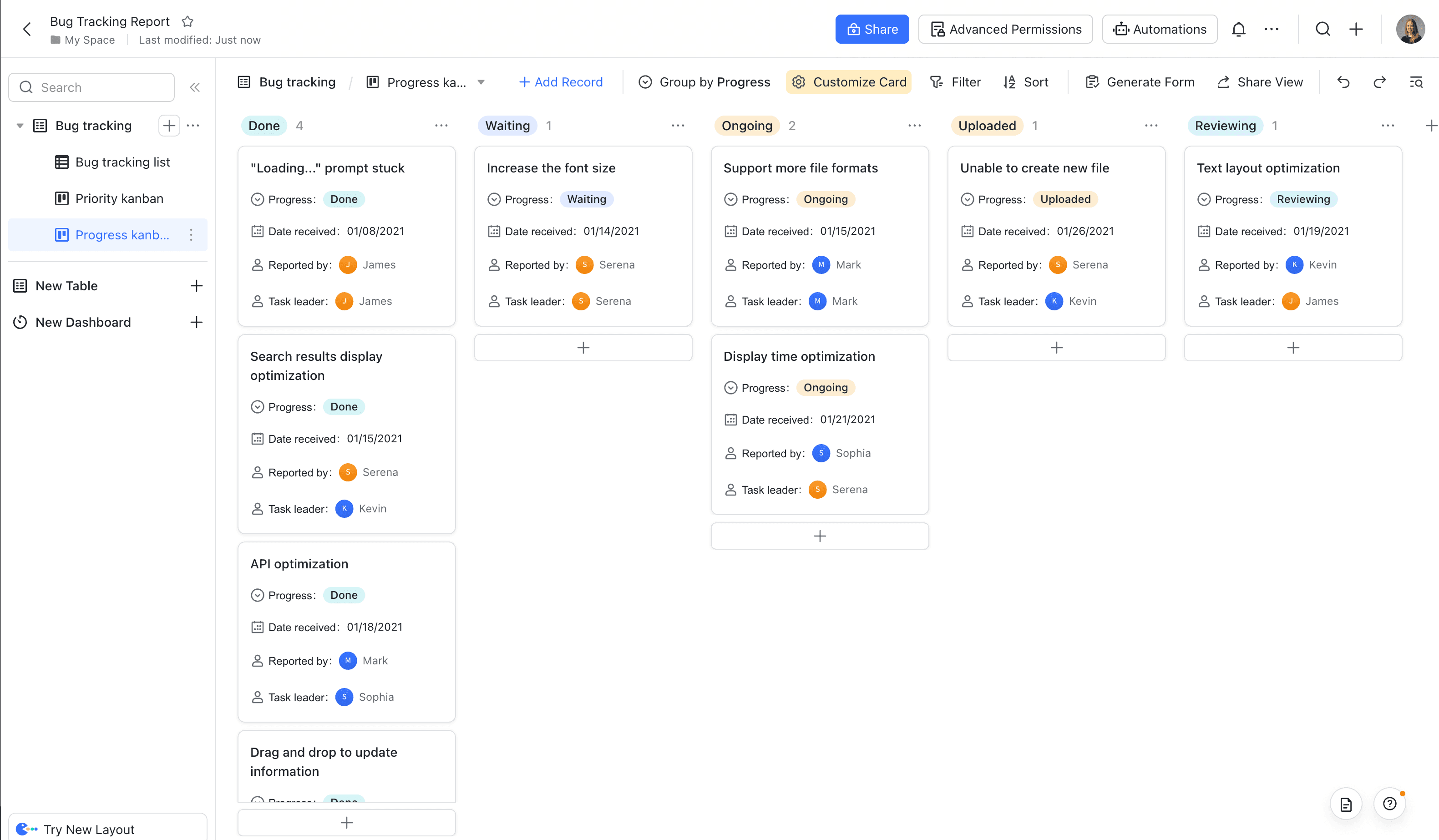 Bugs are an inevitable part of software development, and effectively tracking and managing them is crucial for delivering a high-quality product. Our bug tracking report template helps you keep track of all reported bugs, their priority, progress, and other relevant details in one place. With Lark's powerful features, you can easily collaborate with your team, update the bug status, and ensure that all issues are addressed promptly and efficiently.