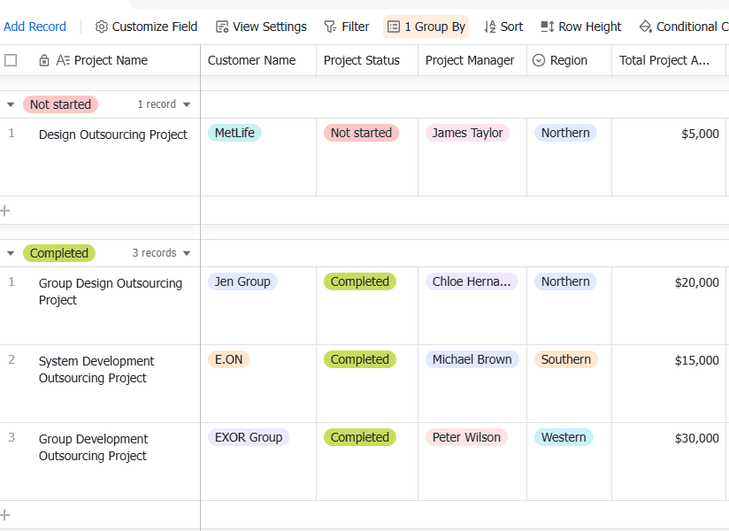 This Business Analysis template with Dashboard is a comprehensive tool that allows you to track and manage your business projects. It provides a clear view of project summaries, team views, project status, and project profits. It also allows you to group, filter, and sort data, adjust row heights, and color-code for easy visualization. The template includes fields for project name, customer name, project status, project manager, region, and total project amount.