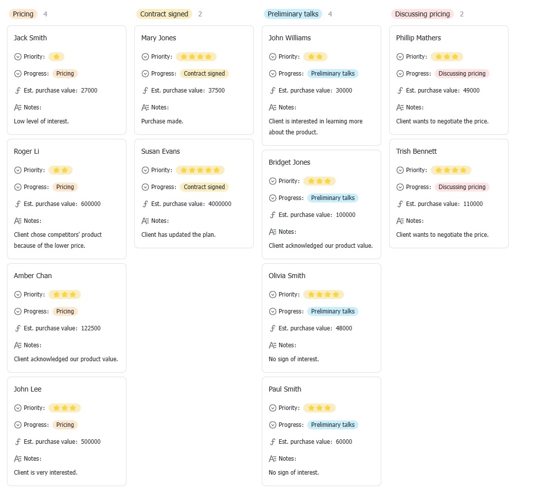 - Sales Representatives: They can use this template to track the progress of their clients, from preliminary talks to discussing pricing and signing contracts.