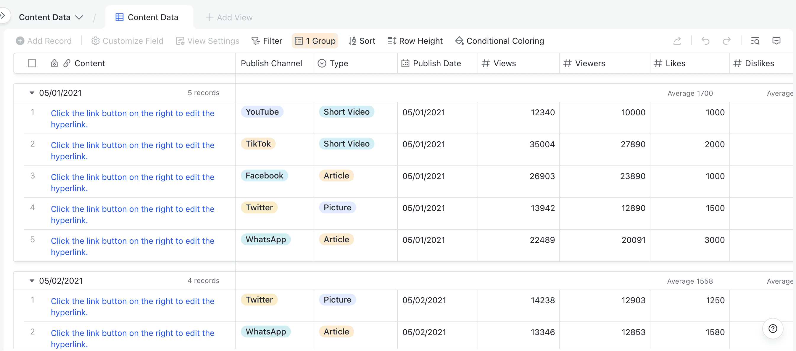 This template is perfect for content creators, content managers, and digital marketers who need to manage a large amount of content data. Whether you're a freelancer managing multiple clients, a small business owner juggling various tasks, or a large corporation with a dedicated content team, this template can help you stay organized and efficient. It's also great for teams that need to collaborate on content creation, as it allows for easy sharing and updating of data. Here's why different professionals might find it useful: