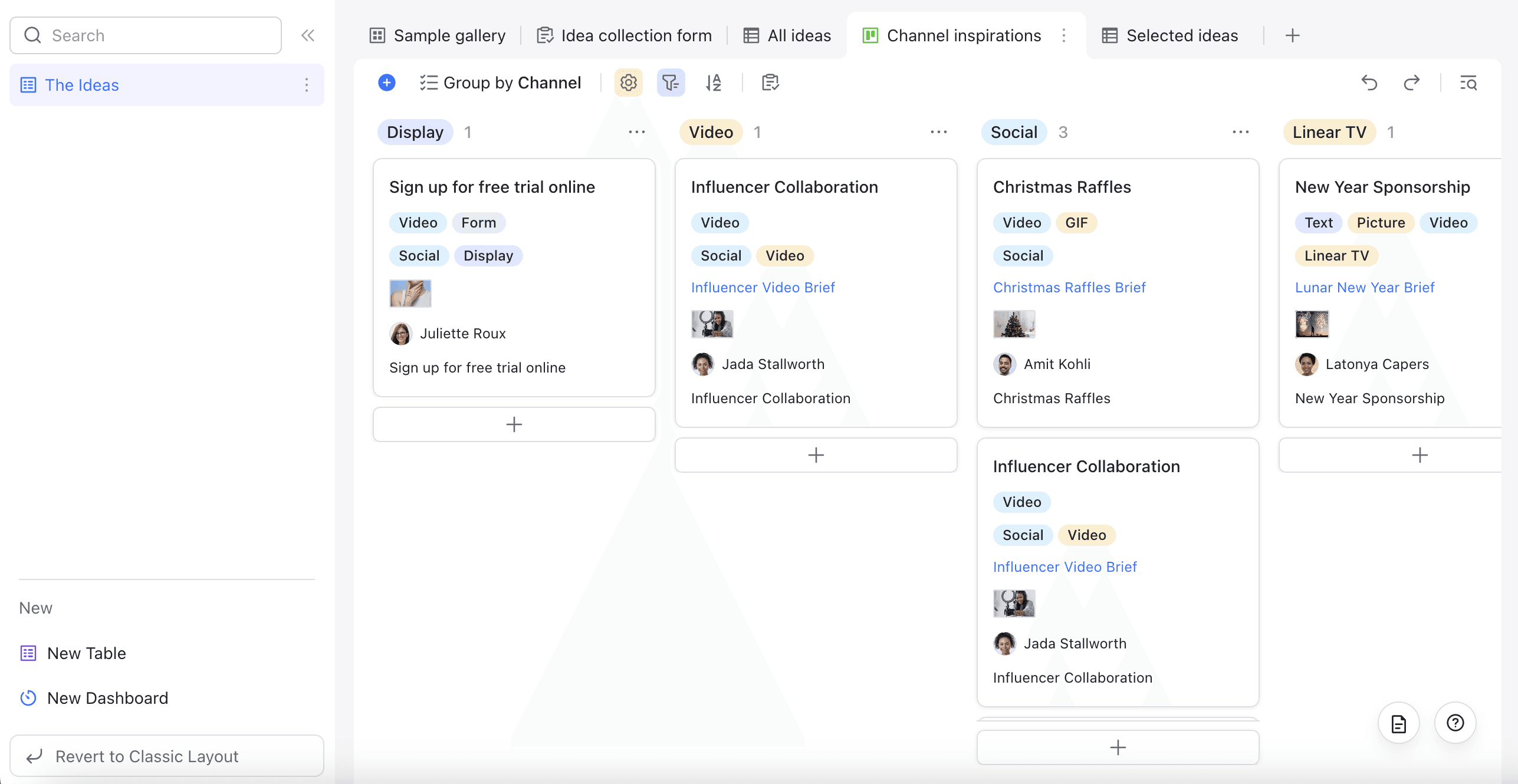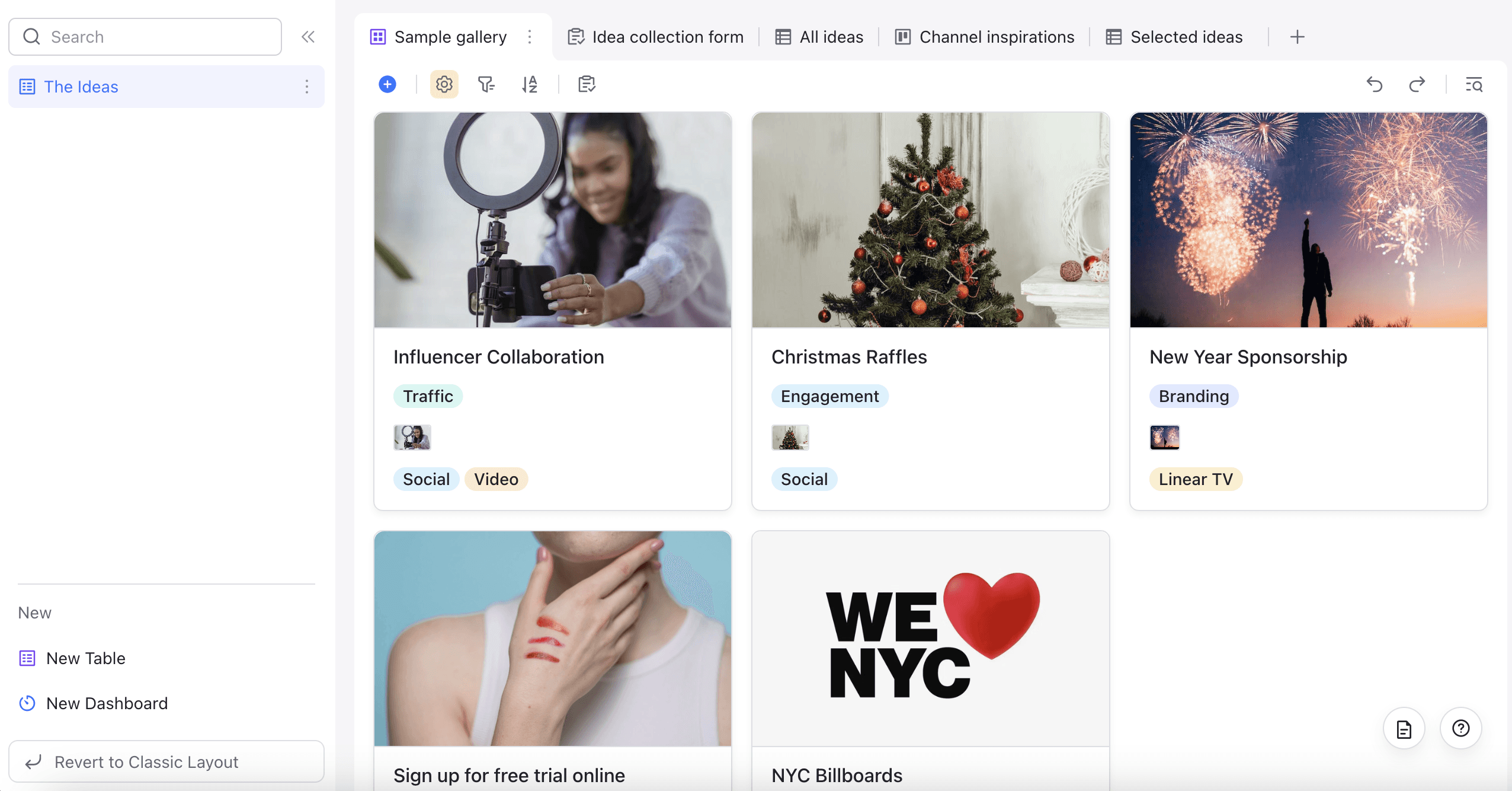 Gallery view to see ideas, samples, and potential ways of usage clearly