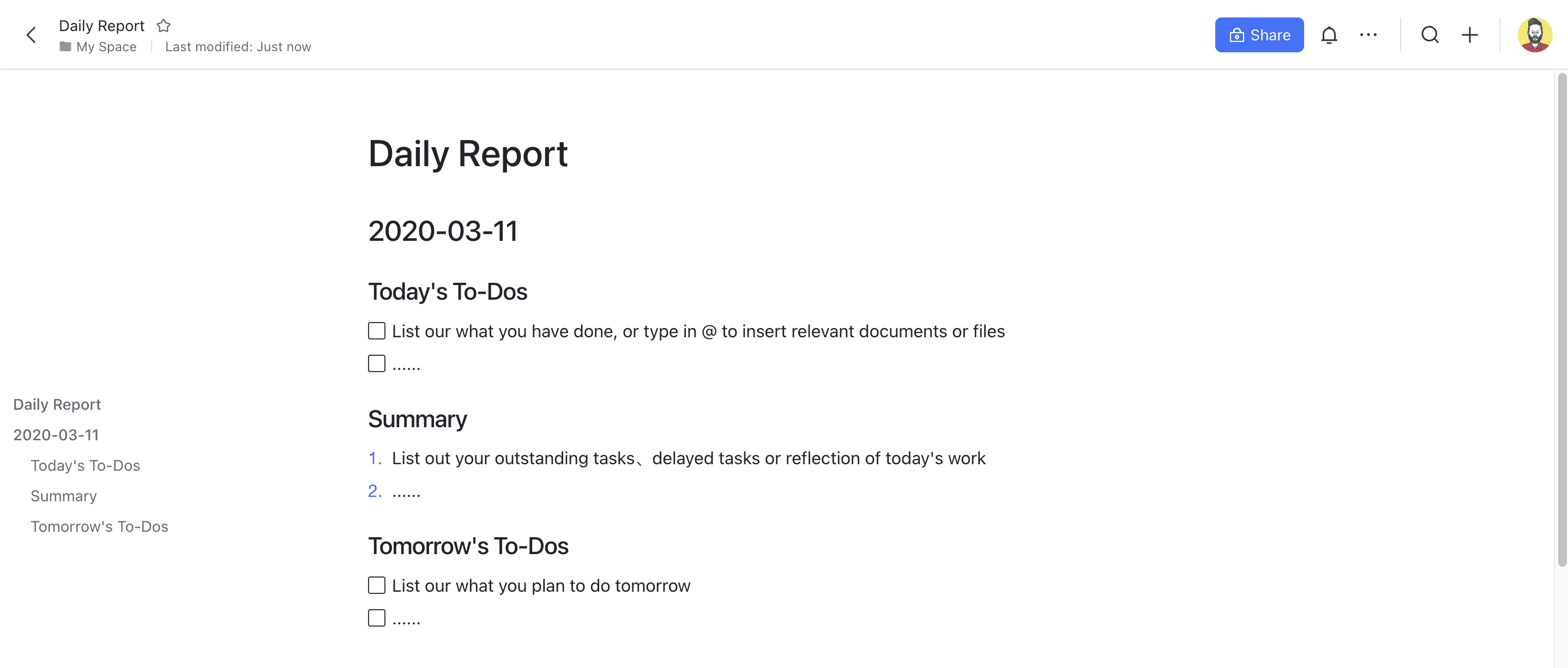 By using the Daily Report template on Lark, you can stay organized, productive, and focused on your work, ultimately saving time and improving your overall performance.