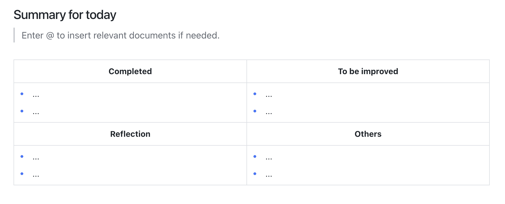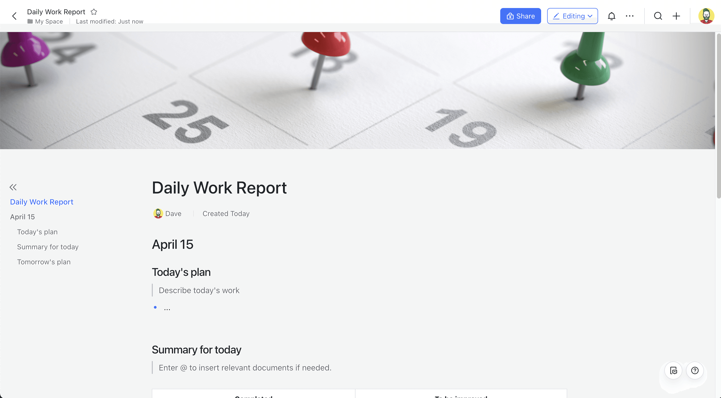 In addition to these benefits, using Lark's daily work report template allows you to easily insert relevant documents, collaborate with your team, and access your work progress on the go. With Lark's seamless integration of essential tools, you can save time and effort while staying organized and productive.