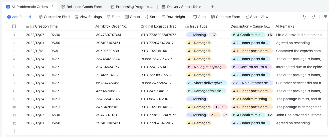 E-commerce businesses often face challenges in managing after-sales processes, such as handling returns, refunds, and replacements. This template is designed to help you efficiently manage your e-commerce after-sales process by tracking customer orders, identifying issues, and taking appropriate actions. With Lark's powerful features, you can easily organize and monitor your after-sales activities, ensuring a smooth and satisfactory experience for your customers.