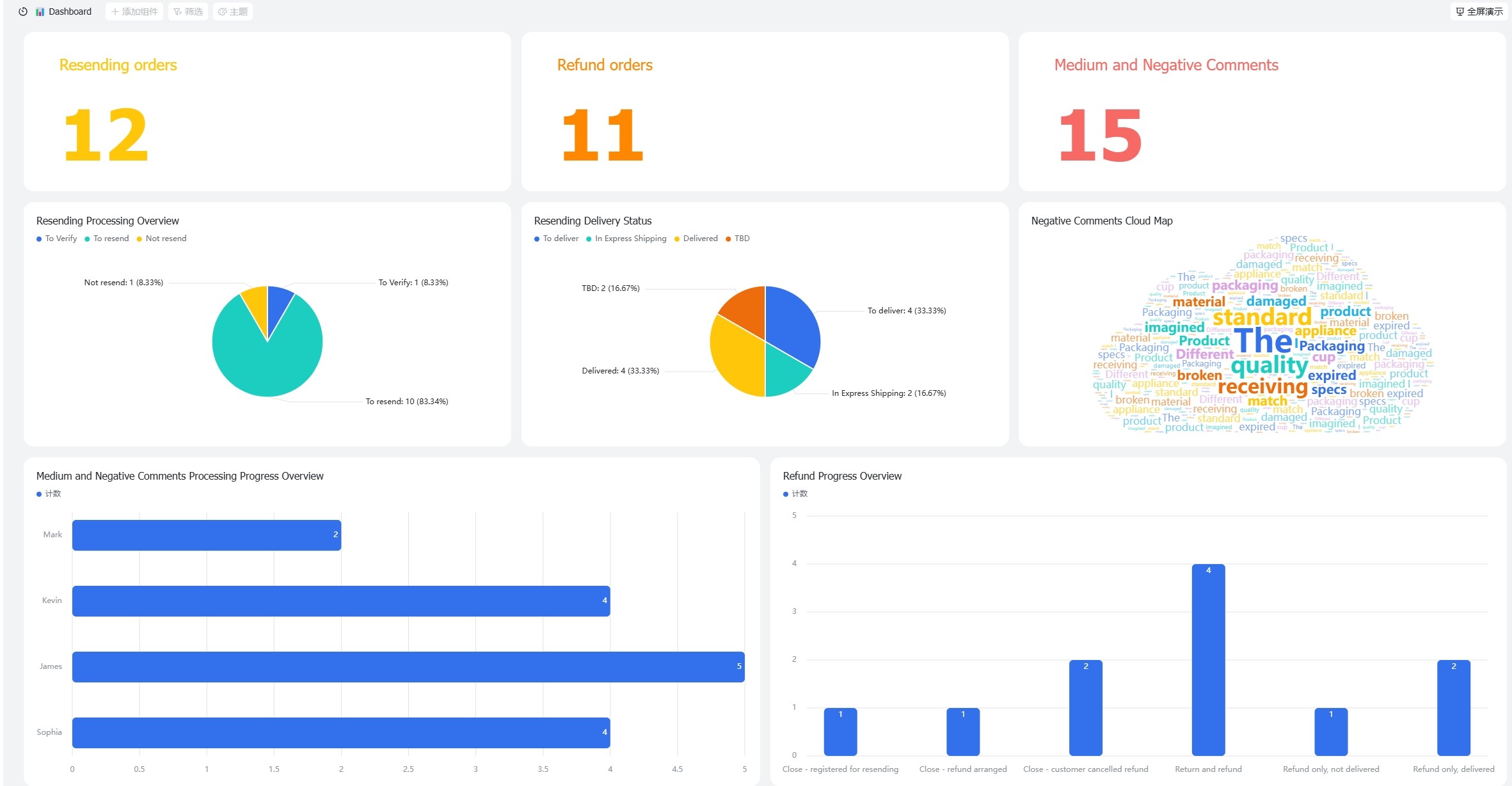 - Improve customer satisfaction by quickly and efficiently resolving issues related to resending orders, processing refunds, and handling medium and negative comments.