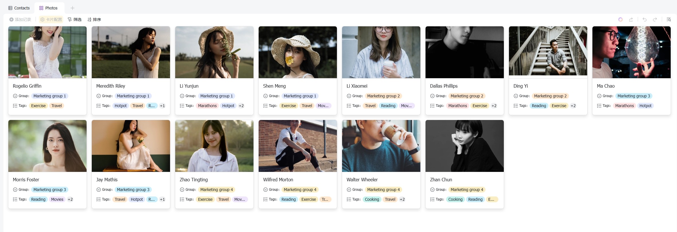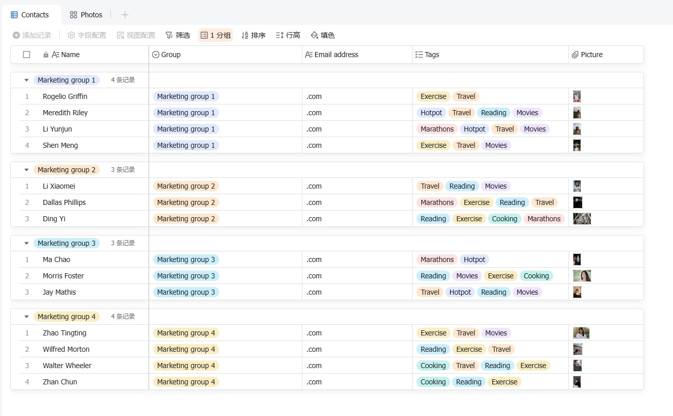 Managing employee contacts can be a daunting task, especially for large organizations. This template is designed to simplify the process by providing a structured format for storing and organizing employee contact information. It includes fields for names, marketing groups, and email addresses, among others. The template also allows for the addition of records and the configuration of fields and views, making it a versatile tool for any HR department.