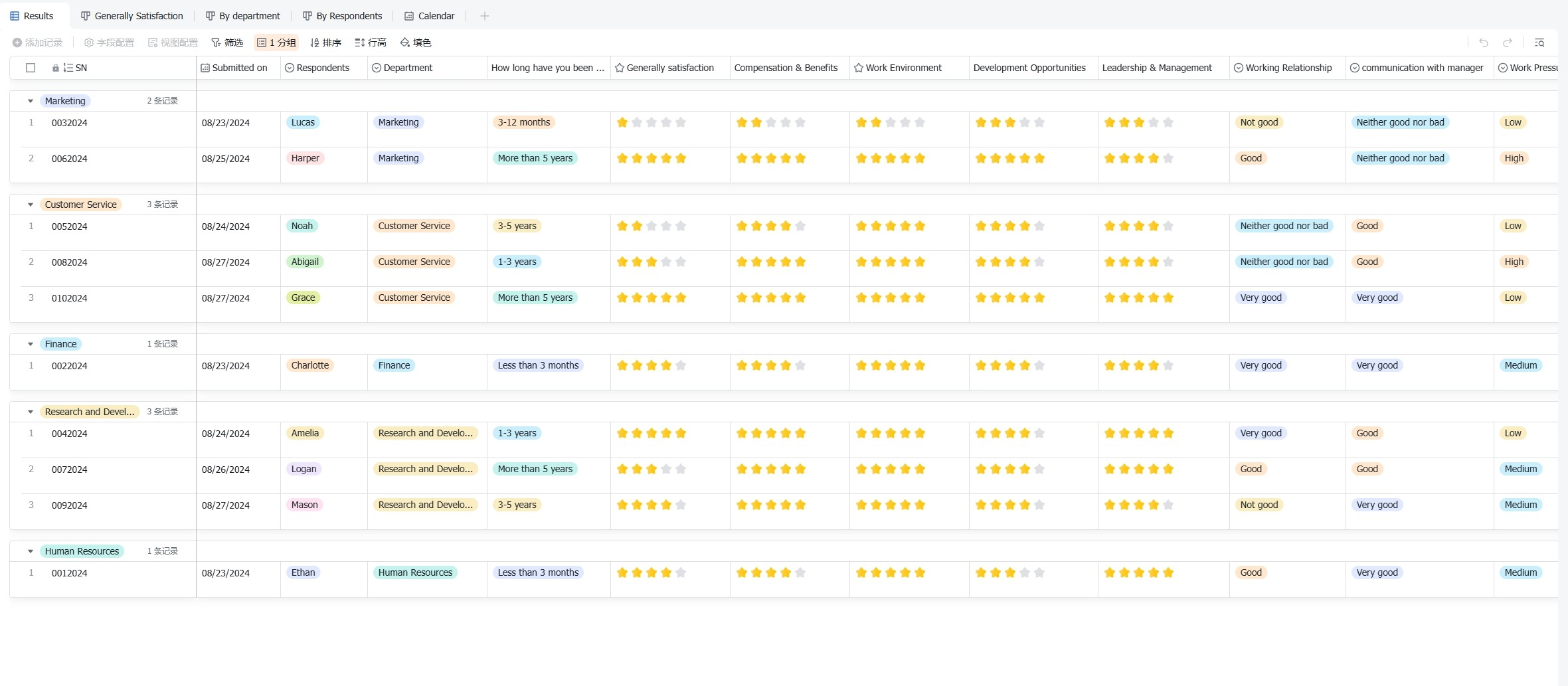 - Comprehensive: This template captures essential data like tenure, department, and general satisfaction, providing a holistic view of employee satisfaction.
