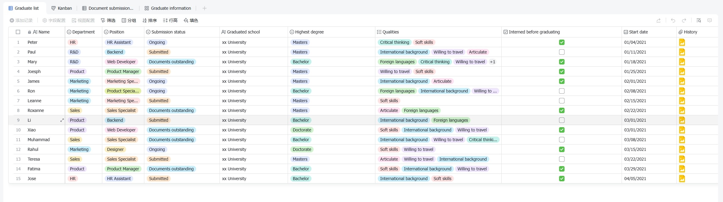 - HR departments: This template can help HR professionals keep track of all graduate applicants in one place, making it easier to manage the recruitment process and ensure no candidate is overlooked.