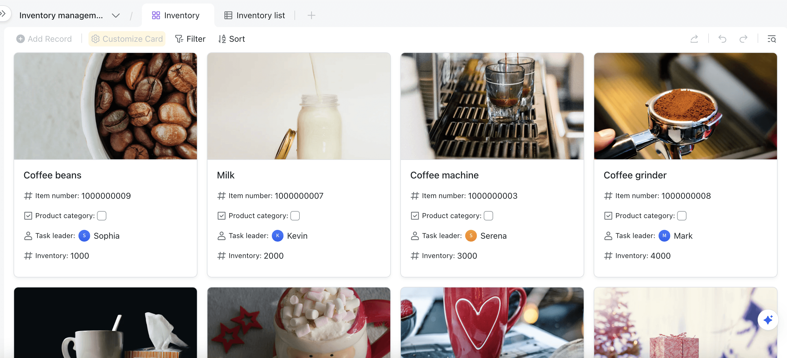 Inventory management is a crucial aspect of any business, especially in the retail sector. It involves tracking and managing stocked goods, ensuring that the right amount of inventory is available at the right time. This Inventory Management template from Lark is designed to help you keep track of your inventory, including item numbers, product categories, task leaders, and inventory levels. It allows you to add records, customize your inventory list, and filter cards for easy navigation.