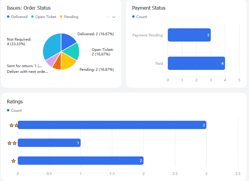 Dashboard with logistics data visualized for the customer service team to track and accelerate