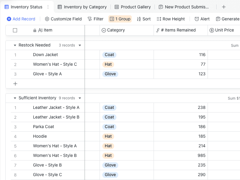 Gallery view to provide the store team a straightforward view of what's available for selling