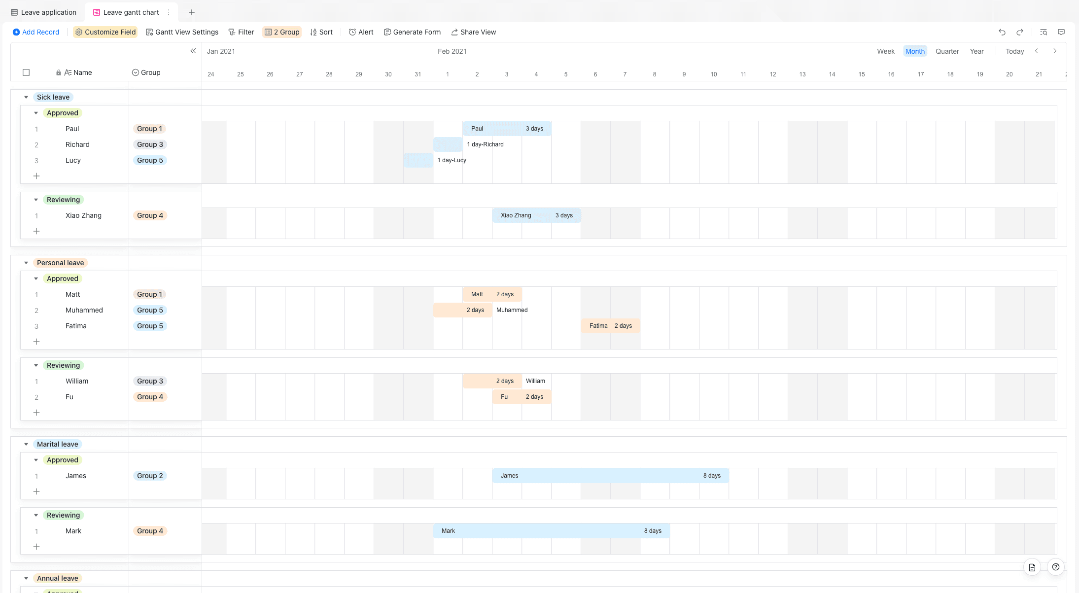 Seamless integration: Connect the template with other Lark tools and features, such as calendars and notifications, for a more comprehensive leave management solution.