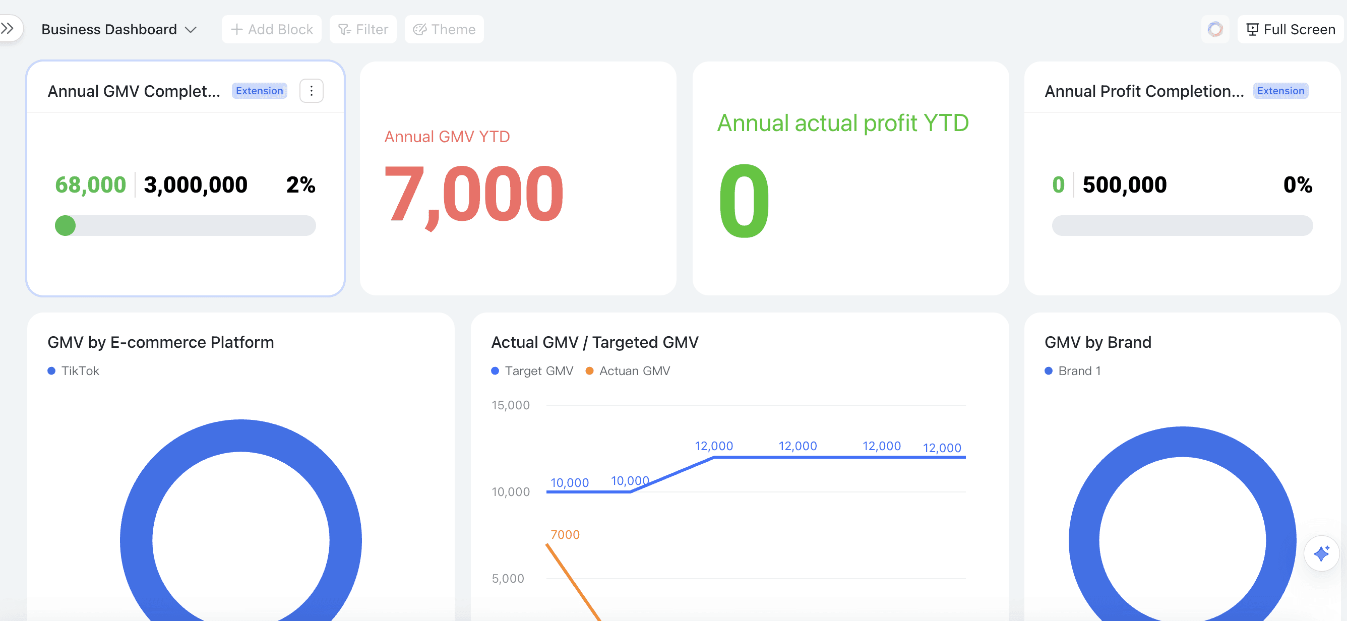- Monitor progress: The template includes fields for annual GMV completion and profit, so you can see how your business is progressing towards its goals.