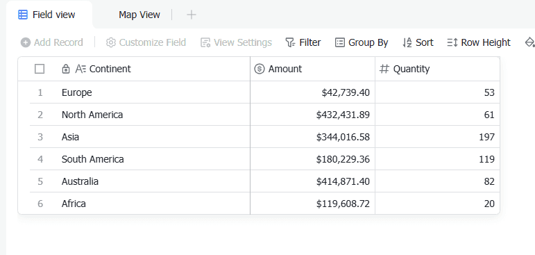 - Customizable: You can customize the view settings, filter the data, group by certain parameters, sort the records, and adjust the row height to suit your viewing preferences.