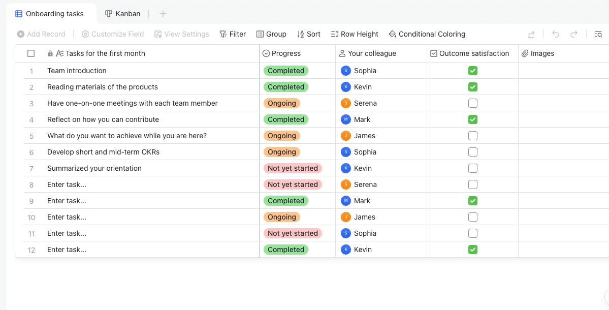 The onboarding process is a critical time for both new hires and the company. It's the time when new employees learn about the company's culture, expectations, and their role within the organization. This onboarding tasks template is designed to help HR professionals and managers streamline the onboarding process. It provides a clear and organized structure for onboarding tasks, including team introductions, one-on-one meetings, reading materials, and the development of short and mid-term OKRs. The template also includes a progress tracker to monitor the completion of each task.