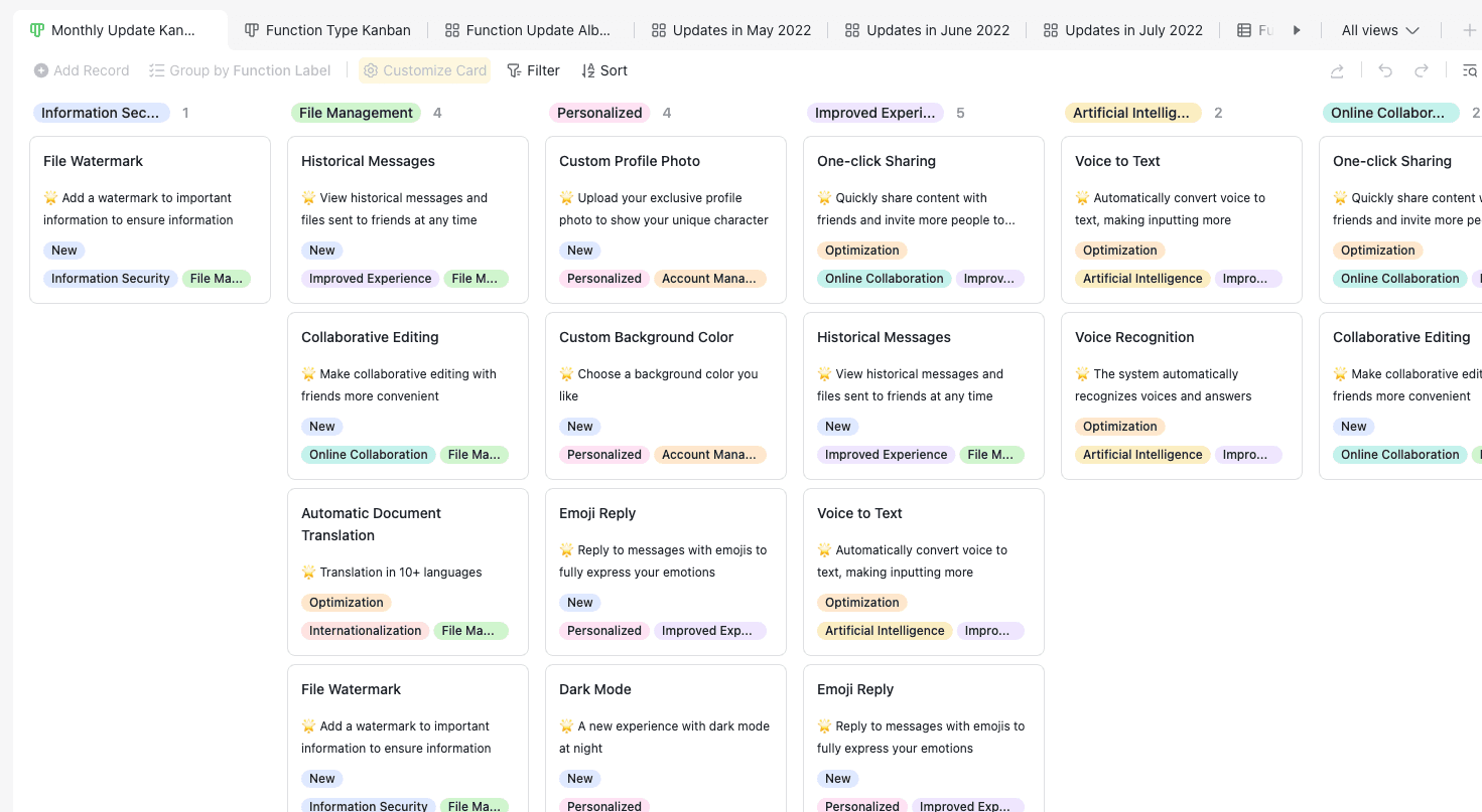 Keeping track of product updates is crucial for any business. It helps you understand the progress of your product, identify areas of improvement, and communicate changes to your team and customers. This product update log template is designed to help you do just that. It provides a structured way to record and track updates, making it easy to see what changes have been made, when they were made, and who made them. The template is organized by month and function type, allowing you to easily filter and sort through updates.