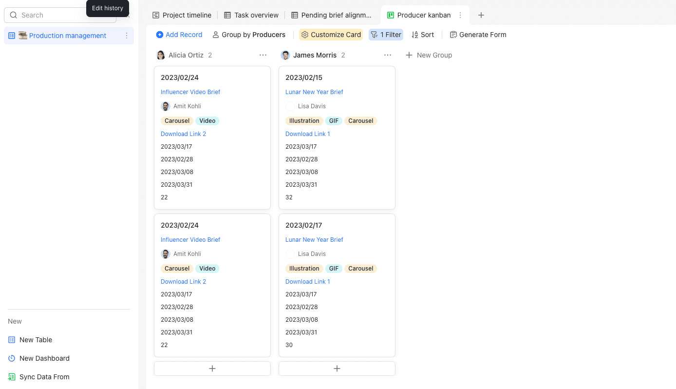 Plan, manage, and organize multiple product projects in a place where the team can access creative assets, keep track of deadlines, and access relevant documents without switching screens.