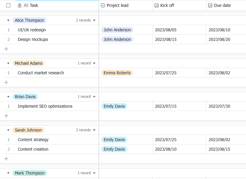 Project managers: Provides PMs with a comprehensive project tracking tool to efficiently organize important tasks, track progress, and ensure deadlines are met. Gantt charts, Kanban boards, and other views can be added to the template to visualize timelines.