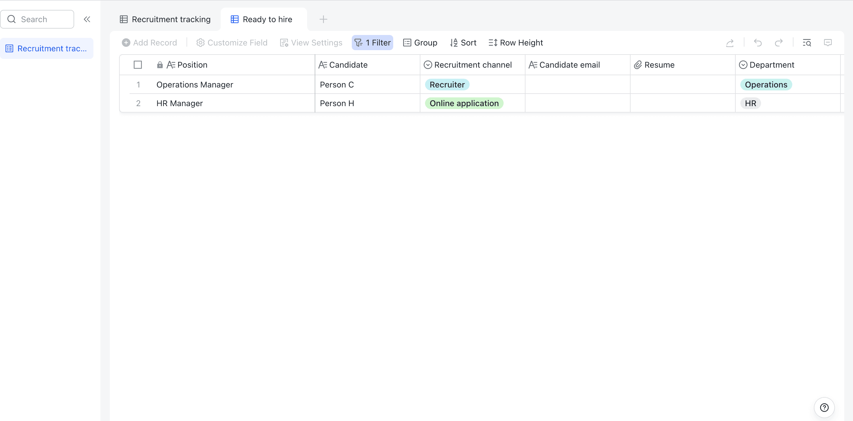 - Streamline your recruitment process: No more juggling multiple spreadsheets or documents. With all your recruitment information in one place, you can easily track the progress of each candidate and make informed decisions.