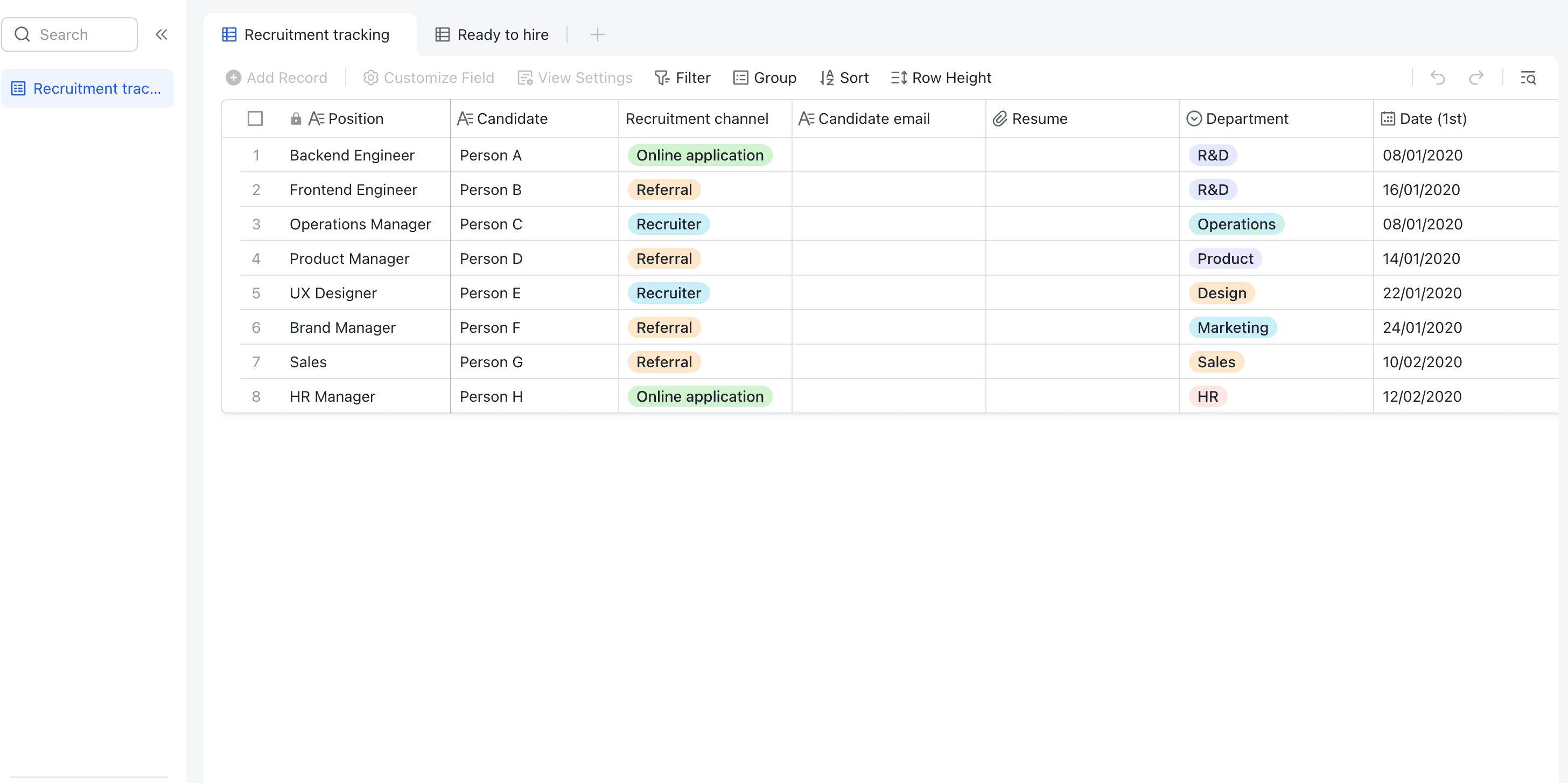 Recruitment can be a complex and time-consuming process. With multiple candidates, positions, and stages to manage, it's easy for details to slip through the cracks. That's where the Recruitment Progress template comes in. It allows you to keep all your recruitment information in one place, making it easier to manage and track. With this template, you can: