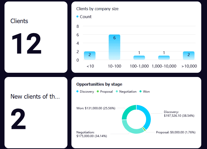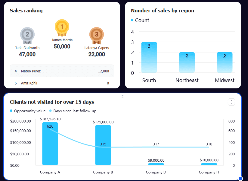 - Gain Insights: The dashboards provide key operational metrics, giving you insights into your opportunities and sales performance. This can help you make data-driven decisions and improve your sales strategy.