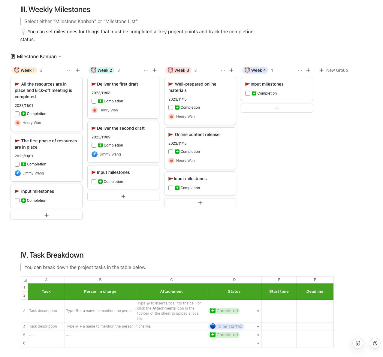 - Increased efficiency: By breaking down tasks and setting milestones, the template helps teams stay on track and complete projects on time.