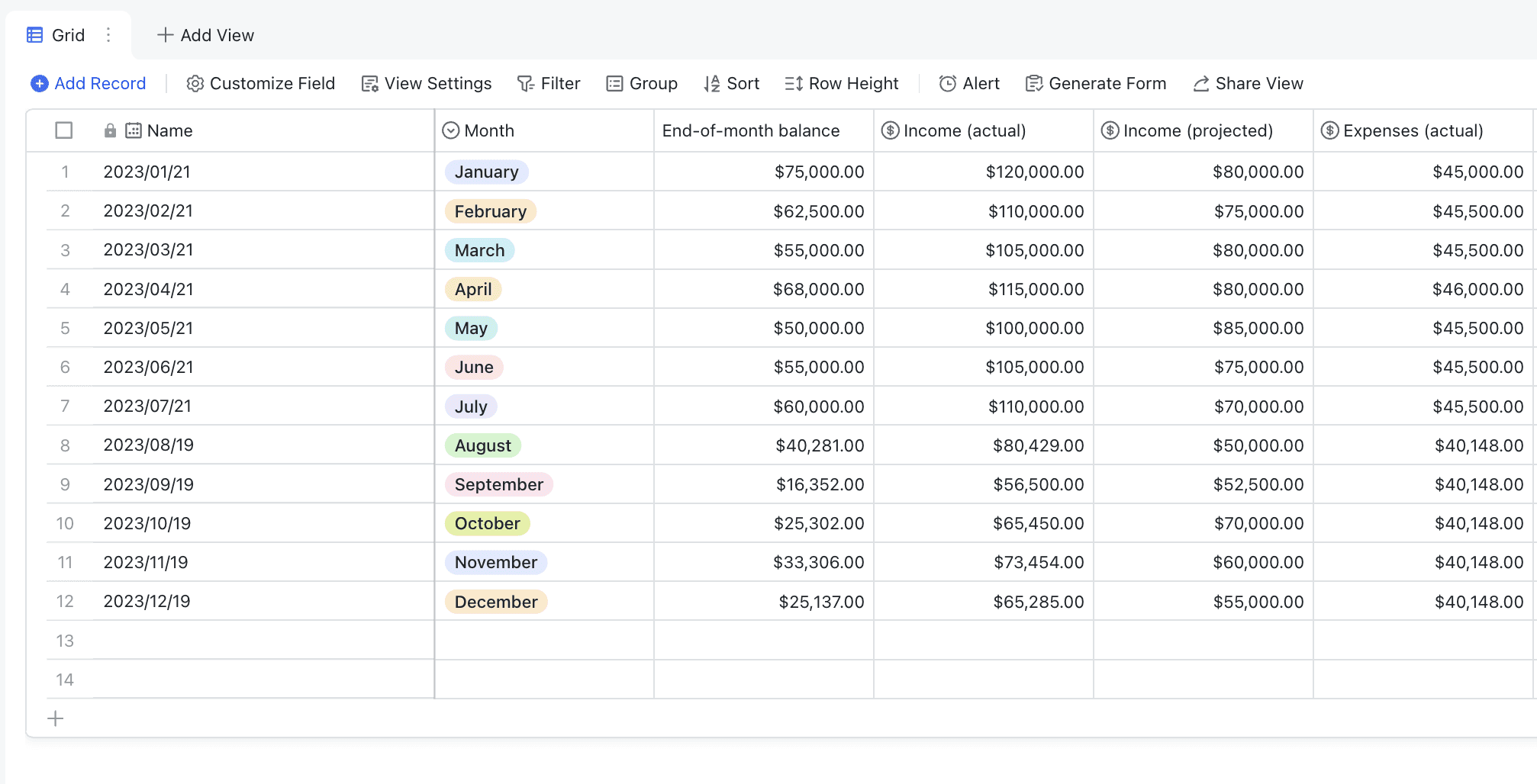 Managing your business finances is crucial for success, and that starts with tracking your monthly income and expenses. With Lark's monthly budget tracker template, you can easily keep tabs on your financial health and make informed decisions to optimize your budget. This template allows you to input your actual and projected income and expenses for each month, giving you a clear overview of your financial situation.