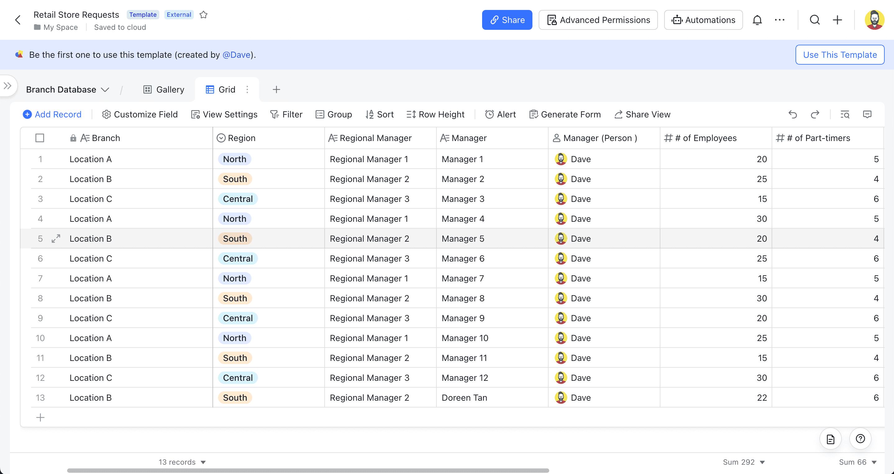 Managing multiple store locations can be a daunting task, especially when it comes to tracking requests, employee information, and target sales. Our Store Requests template is designed to help you keep track of all the essential information related to your stores, such as branch location, regional manager, store manager, number of employees, contact number, address, and target sales. With Lark's powerful features, you can easily organize and manage all your store data in one place, making it easier to monitor progress and make informed decisions.