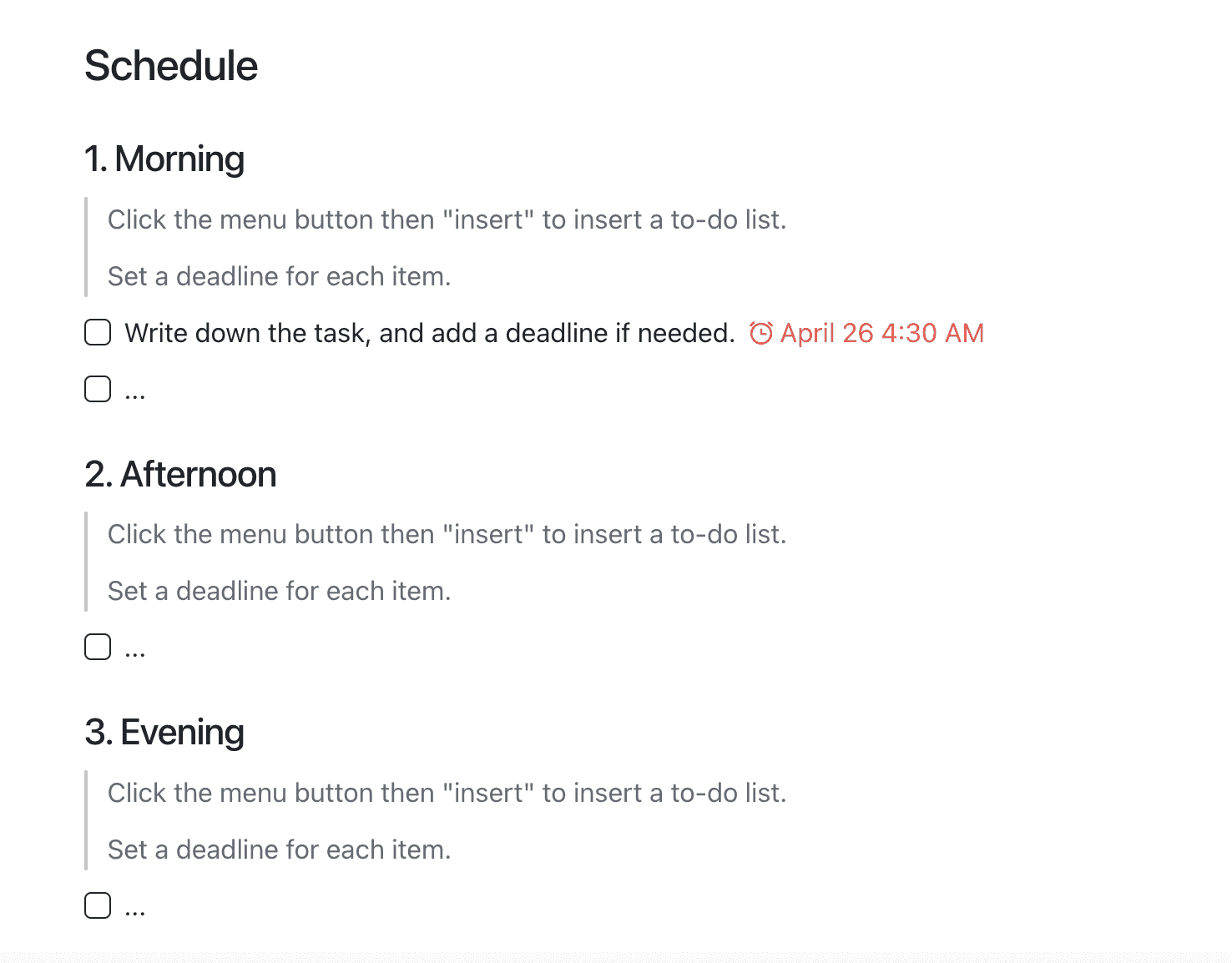 Staying on track with your study goals can be challenging, especially when juggling multiple tasks and deadlines. That's why we've created this study plan template to help you organize your goals, daily schedule, and tasks in a clear and efficient manner. With Lark's user-friendly features, you can easily customize your study plan, set deadlines, and track your progress towards achieving your goals.