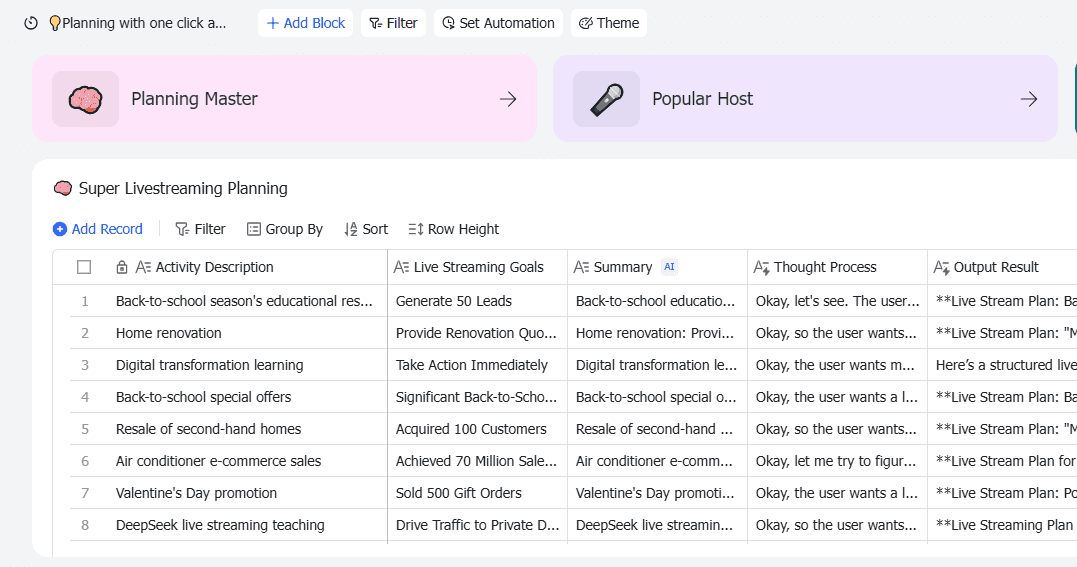 This template is a perfect fit for a wide range of users. If you are a live stream host, a digital marketer, a content creator, or a social media manager, this template is for you. It's also ideal for educational institutions planning back-to-school live streams, home renovation professionals providing renovation quotes, businesses focusing on digital transformation, and e-commerce businesses aiming to boost sales through live streams. The Super Livestreaming Team template is designed to make your live streaming process more efficient, organized, and successful.