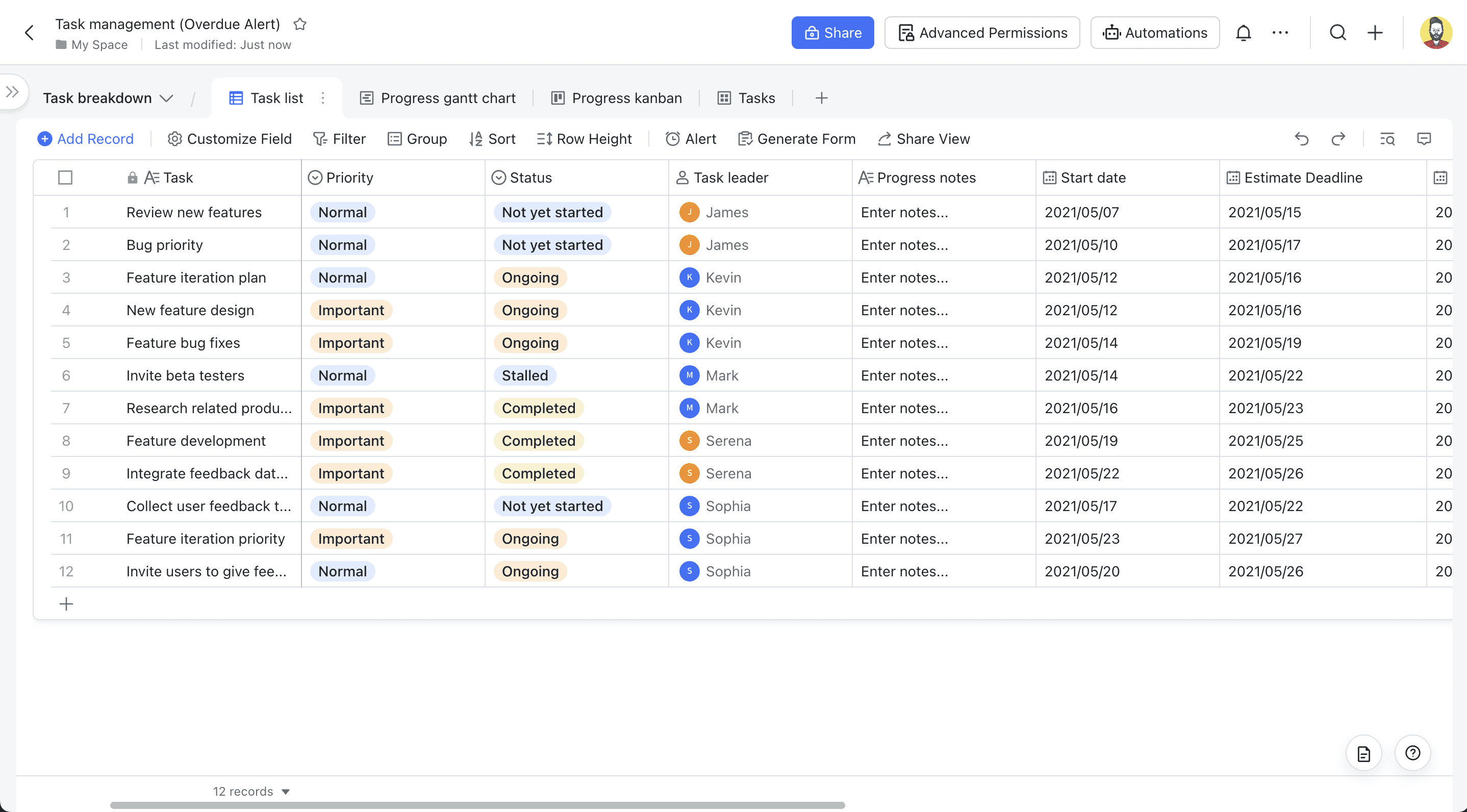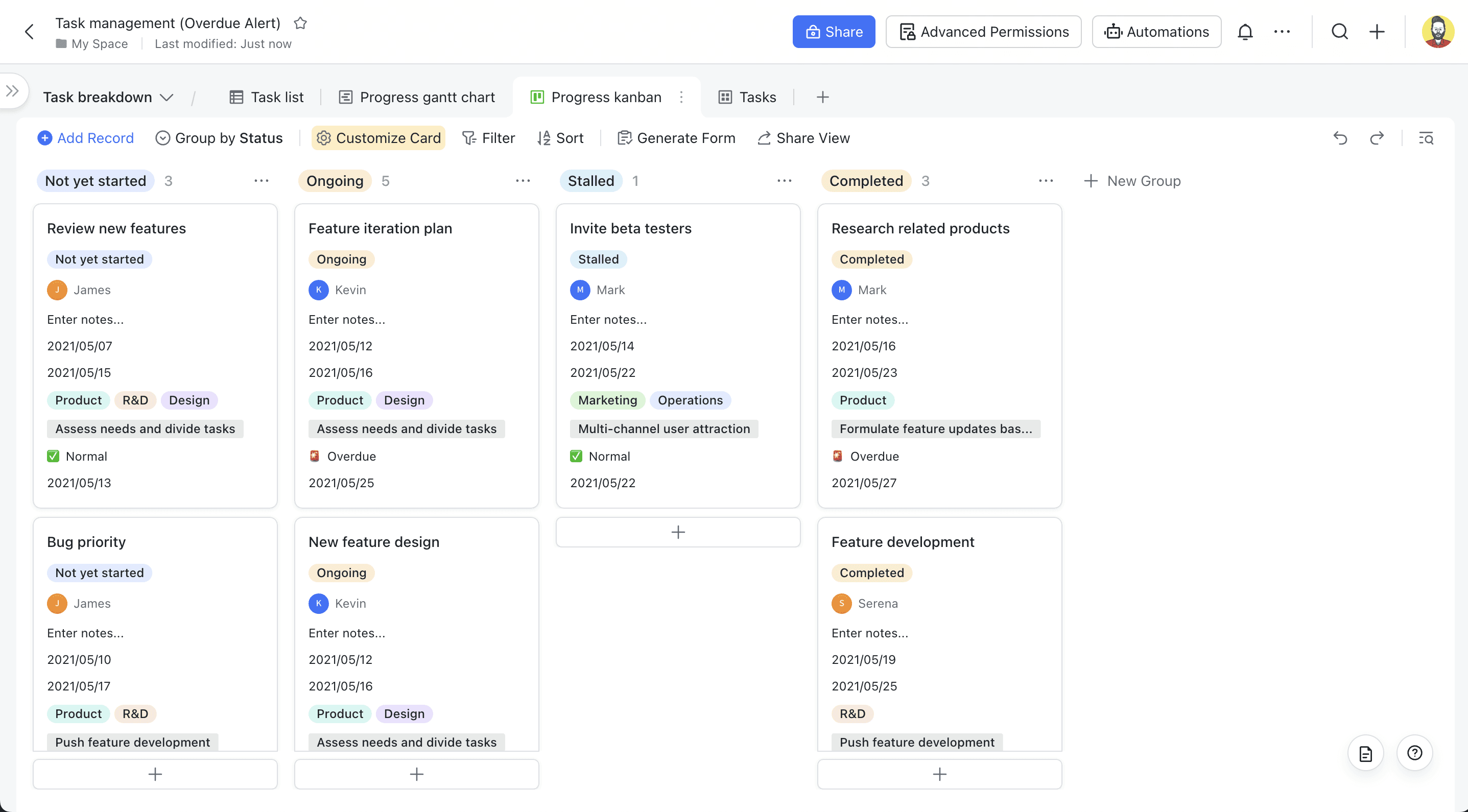 Overdue alerts: Receive automatic alerts when tasks are overdue, helping you identify potential bottlenecks and address them promptly.