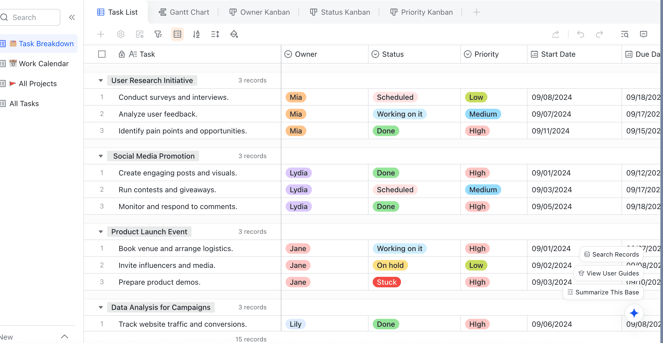 - Time-Saving: By having all your tasks and their relevant information in one place, you can save time on meetings and emails trying to figure out who's doing what and when. This can free up more time for your team to focus on the tasks at hand.