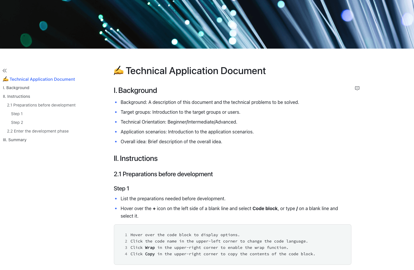 A technical application document is a crucial part of any project, as it outlines the background, target groups, technical orientation, application scenarios, and overall idea of the project. It also includes detailed instructions for preparations before development and the development phase itself, along with a summary of what can be achieved and possible challenges. This template will help you create a comprehensive technical application document for your project, ensuring that all aspects are covered and well-documented.