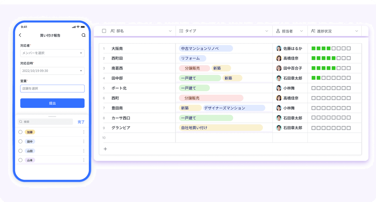 Larkを知るまでは、必要な機能を備えたツールをバラバラに探していました。別のチャットツー 弊社では、各物件の工程や入金日の管理のために表計算ソフトを使用し、管理表を作成していました。問題点としては、関数などが崩れて計算がおかしくなってしまう、日付変更などの情報を全ての社員が同じ様に知ることができない、などさまざまな情報を積極的に見に行く必要がありました。物件管理は人の「やるかやらないか」により抜け漏れが発生してしまう状況でした。