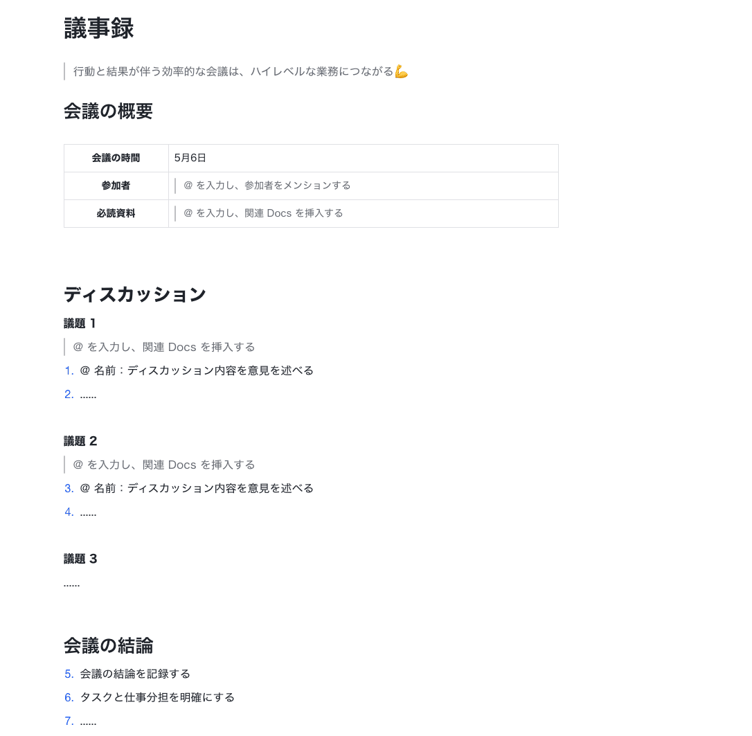 Larkのdocs (文書作成機能)は、新規ページの作成に広く用いられており、業務関連の文書管理を容易にしています。