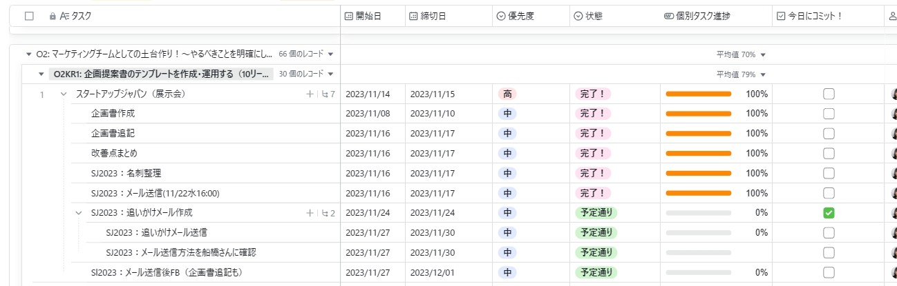 Larkを用いてOKR(目標と主要成果指標)の管理を行っています。四半期ごとに設定されるOKRは、実際の評価が月末ではなく、1週間から2週間前に前倒しで行われることがあります。これにより、より現実的で実行可能な評価タイミングを確保し、効果的な目標管理を実現しています。
