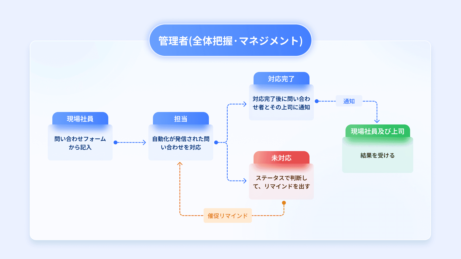 条件に応じた自動通知やステータス変更時のリマインドを設定することで、関係者が常に最新の情報を把握できる体制を整備しました。