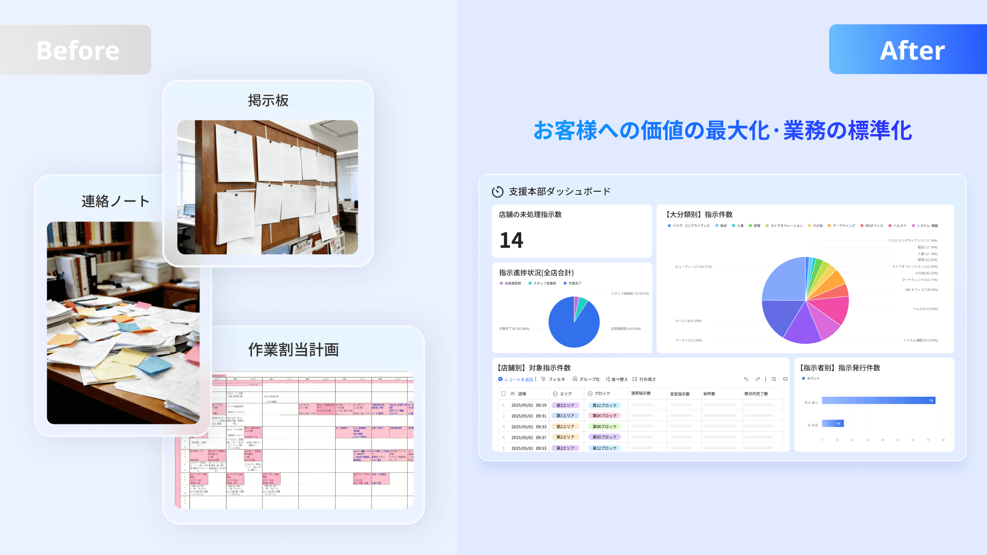 指示業務の見える化とツール統一で、業務効率とコスト削減を同時に実現
