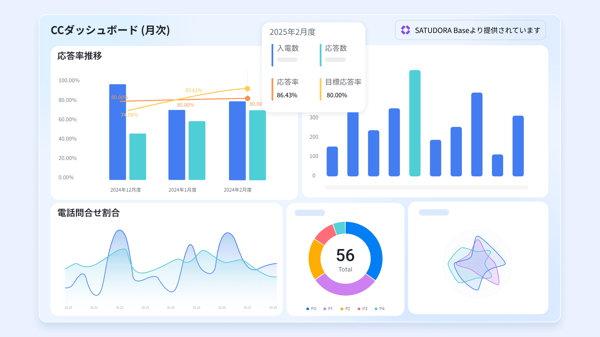 問い合わせの件数・対応状況を可視化(チケット数・部門別・内容別にダッシュボード管理)