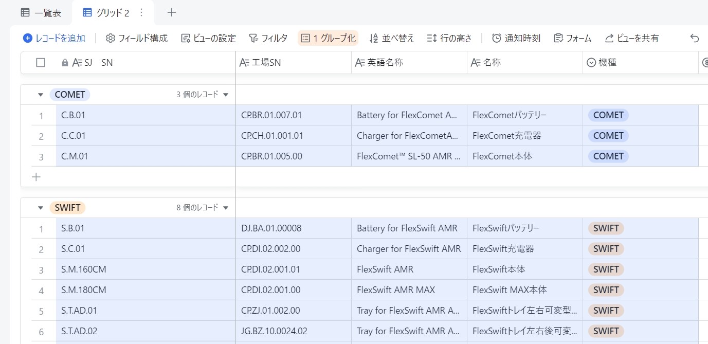 物流センターにあるロボットの在庫をBaseで管理しています。私たちの仕事では、どのロボットがどこにあるのかを把握するのが非常に重要です。LarkのBaseから倉庫名と、ロボットのシリアルナンバーをここで全て管理しています。従業員はここを起点に、把握から、コミュニケーションまで全てできるので便利ですね。