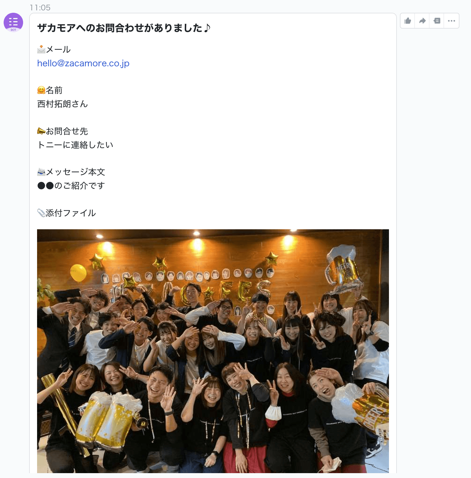ザカモアでは、サンクスボイスメールと言って、ボイスメッセージで感謝の気持ちを伝える習慣をつけています。これは月5人に送ることになっています。忙しくて感謝の気持ちを伝え忘れることもありますが、サンクスボイスメールのおかげで、みんなが感謝の気持ちと積極的に助け合う文化が生まれていると思います。