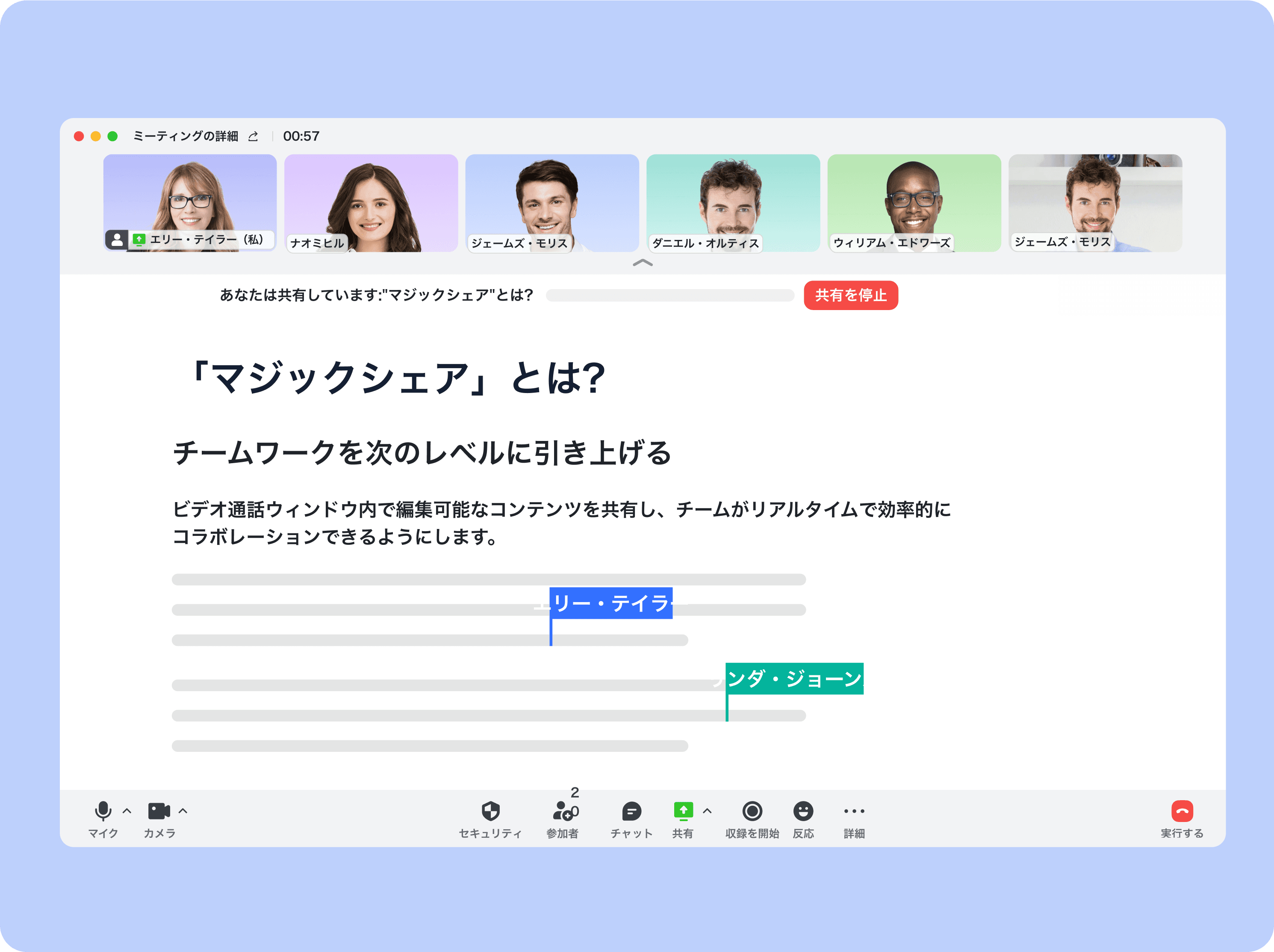 ドキュメントやシート、マインドノートまでいろんなフォーマットで共同編集可能です。