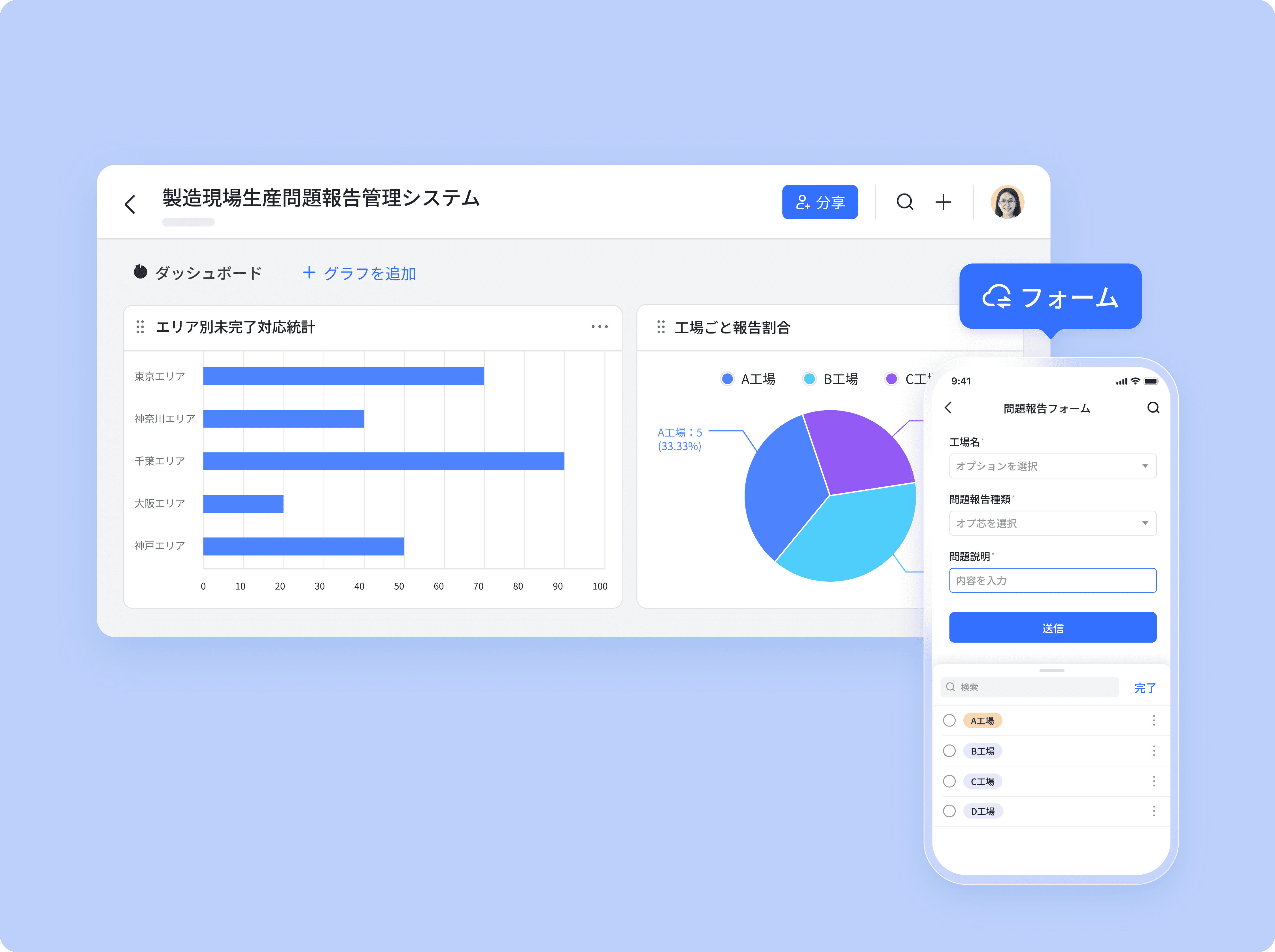 現場の点検システム、営業分析のダッシュボードなど、ノーコードで自分だけのカスタムアプリが作れる。