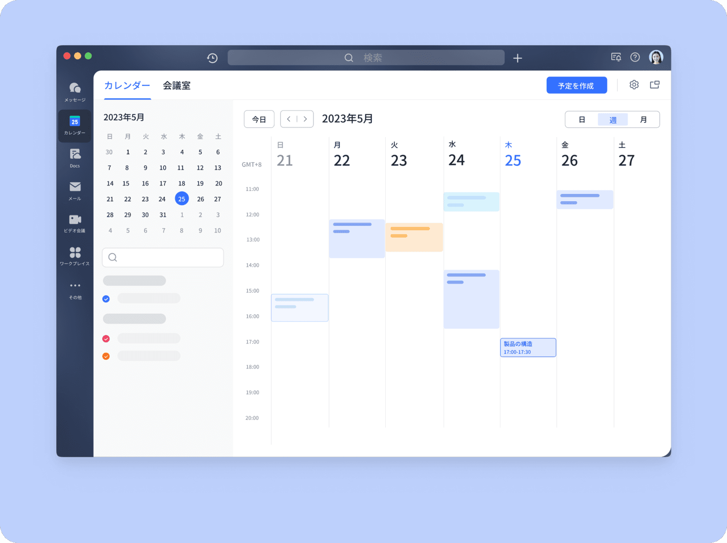 Larkのカレンダーは直感的で使いやすく、スケジュールの管理や共有が簡単にできます。また、他のLarkアプリとのシームレスな統合により、チャットやタスク管理との連携がスムーズに行えます。柔軟なカスタマイズ機能により、異なるチームや部門での利用にも適応でき、組織全体のコラボレーションを促進します。