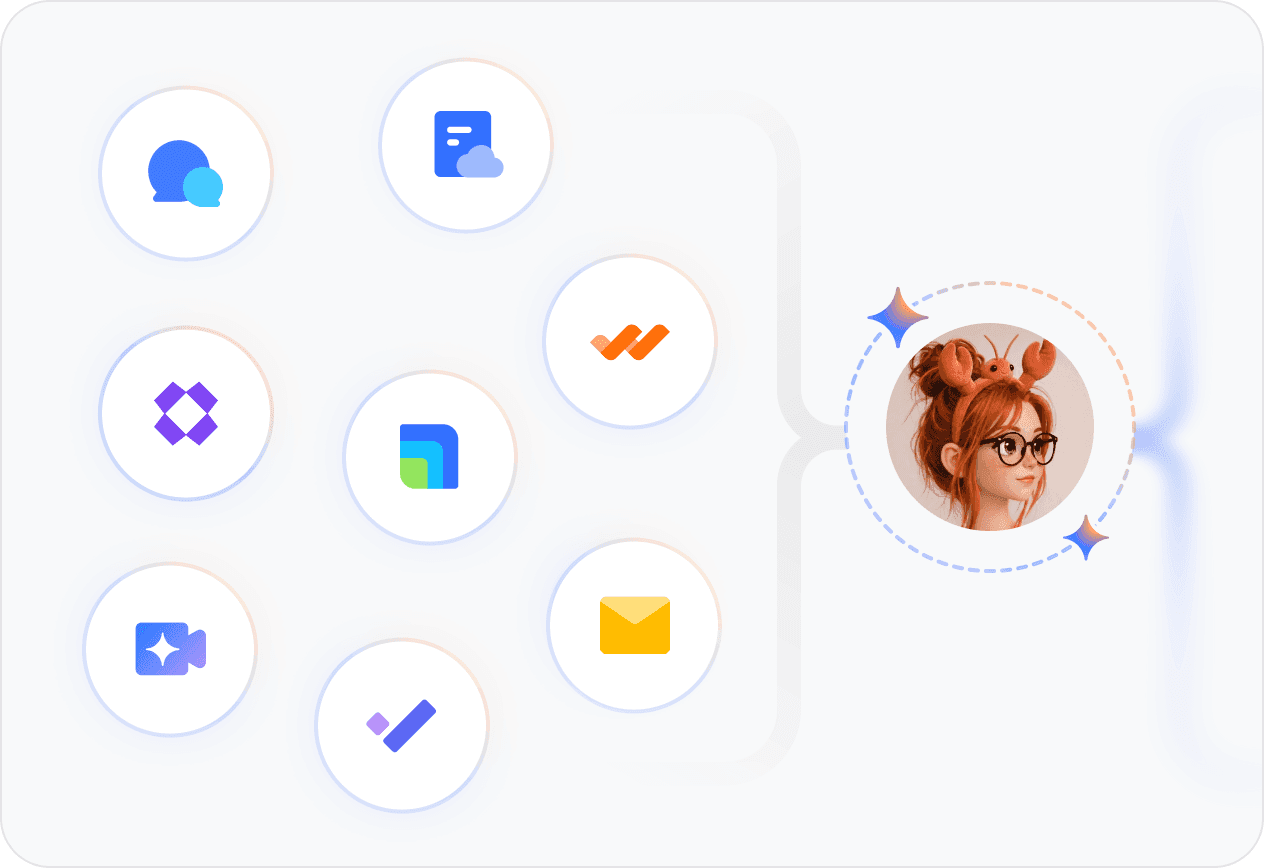 在授权范围内获取即时消息、文档、知识库、多维表格、审批、任务、会议纪要等信息,自动拉齐跨工具、跨部门上下文,快速完成摘要、归因、优先级判断与异常识别。